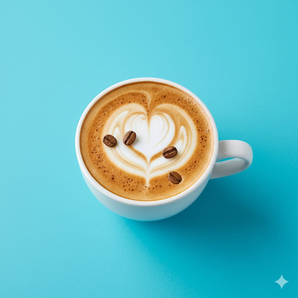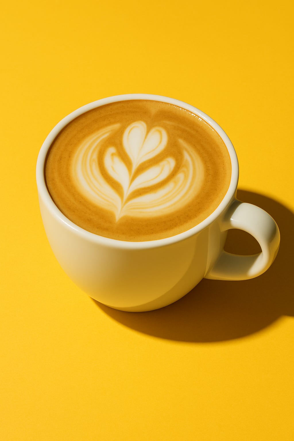 šŖ Prompt: Product shot of a cappuccino, bright solid color background, bright lighting similar to contemporary direct to consumer brands.