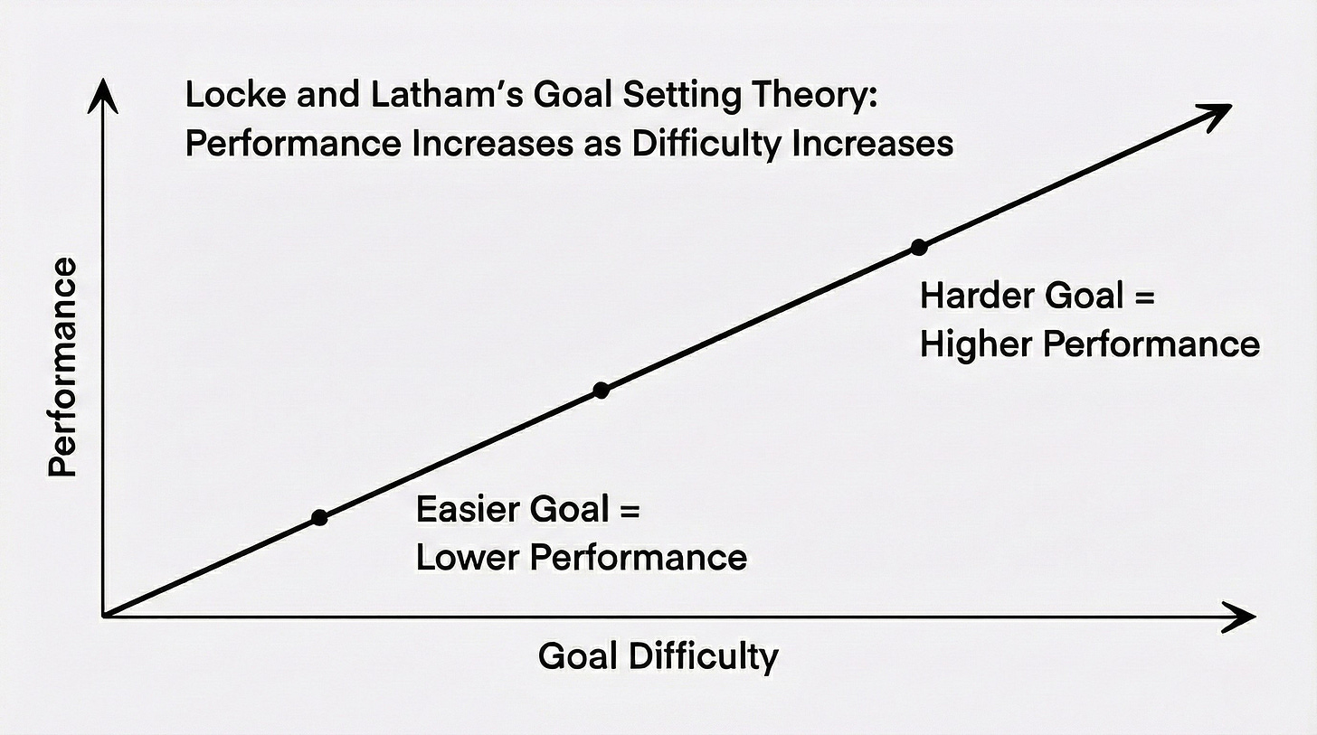Decades of work by organizational psychologists Edwin Locke & Gary Latham (the pioneers of goal-setting theory) show that difficult, specific goals consistently outperform easy ones.1