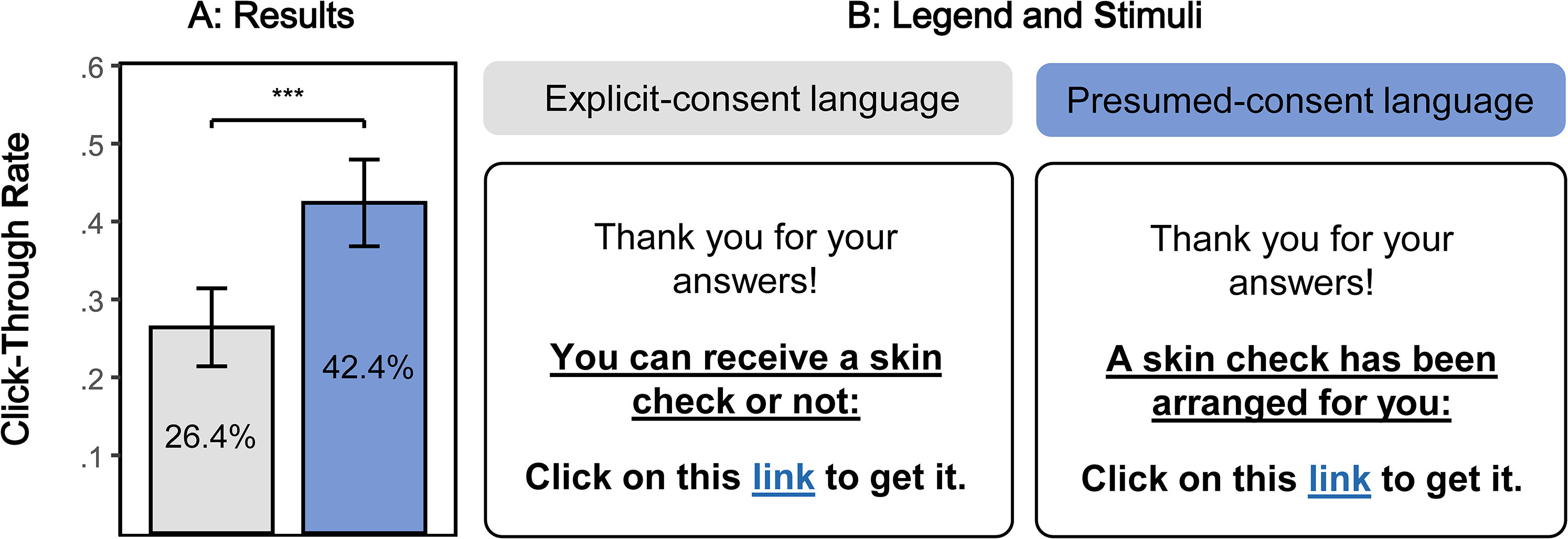 In a recent Journal of Marketing study, replacing phrases like “You can receive a skin check or not” with “A skin check has been arranged for you” increased click-through rates from 26% to 42%, even though participants still had to take action to book the appointment.