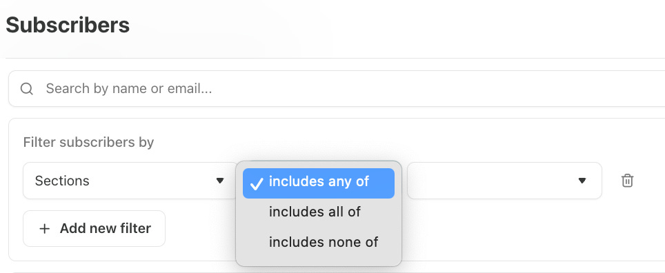 The second dropdown lets you choose how you want to filter your section subscribers.