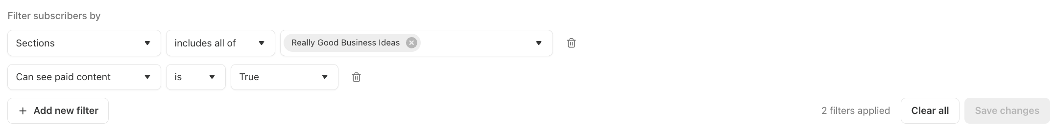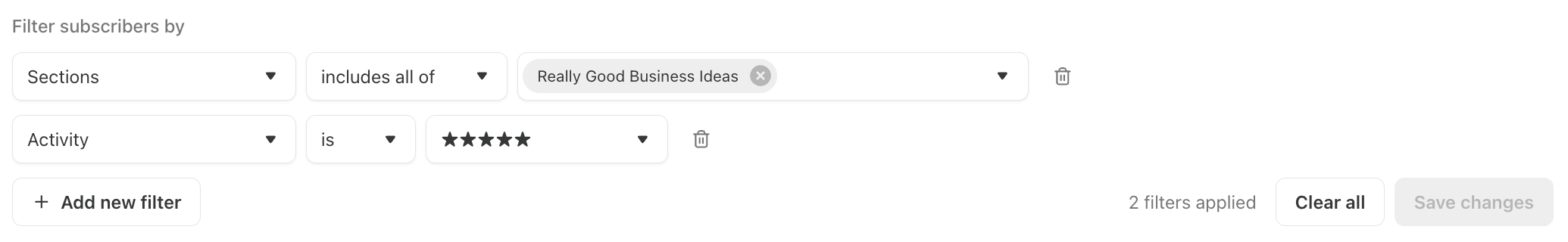 Emailing a specific segment of subscribers, including those from a specific section, starts by filtering your subscribers for only those you want to email.