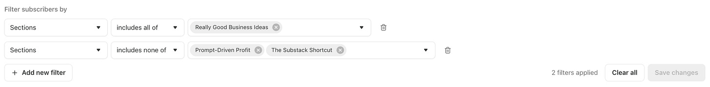 Sections already ask readers to raise their hands for what they want. Filtering by section simply lets you see (and respect) those choices. Used well, it helps you understand where interests overlap, where they don’t, and where engagement and paid support are actually concentrated.