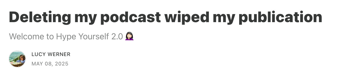 learned this the hard way when her entire publication got wiped after she deleted an unused podcast feed. She lost all her subscribers, content, and engagement, and had no backup. Unfortunately, Substack was unable to help her fully recover her publication, and she ultimately decided to rebuild elsewhere.