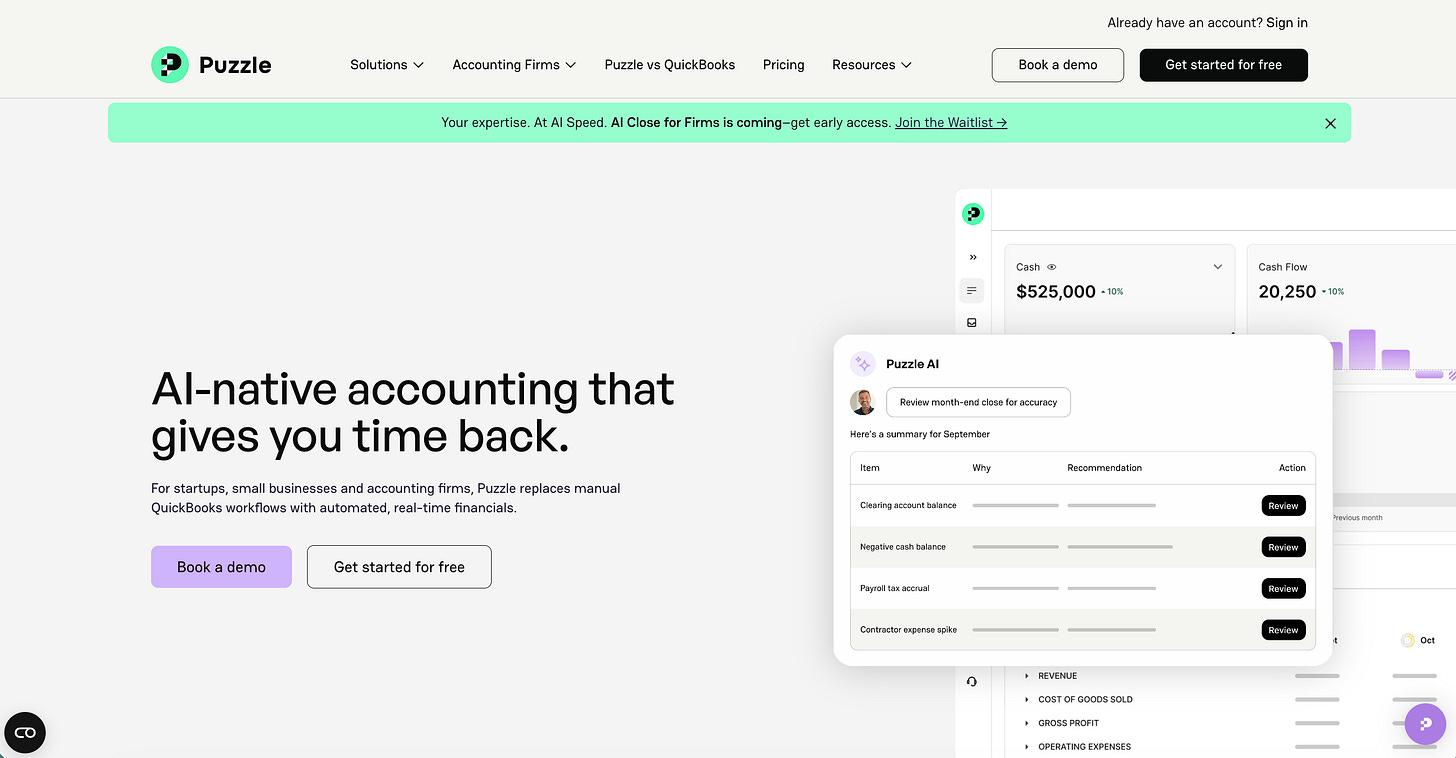 Puzzle is free for your first $20,000K in transactions, which comfortably covers most early-stage Substack publications. When you’re ready to upgrade, if you went the incorporation route and signed up through Stripe Atlas, you can also get 50% off your first year.