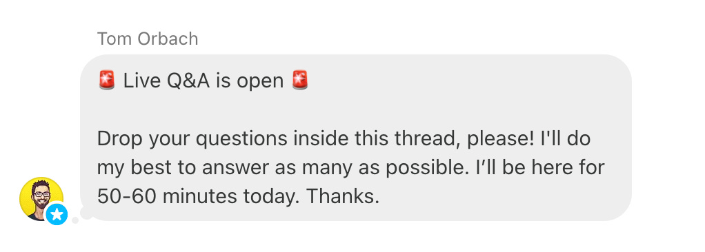 subscriber chat is only available to paid subscribers. Author also hosts a live Q&A weekly, giving community members an exclusive chance to engage directly with him.