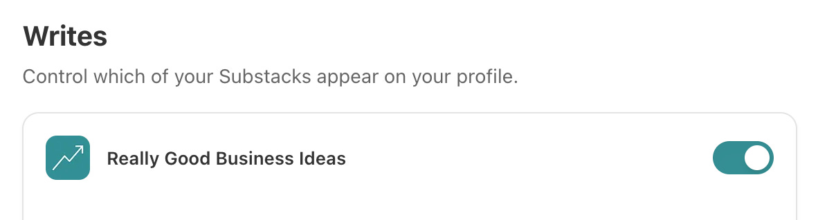 If you have any Substack publications, you can choose whether to display them on your profile. I recommend making sure all your active publications are visible unless you are specifically trying to keep them private.