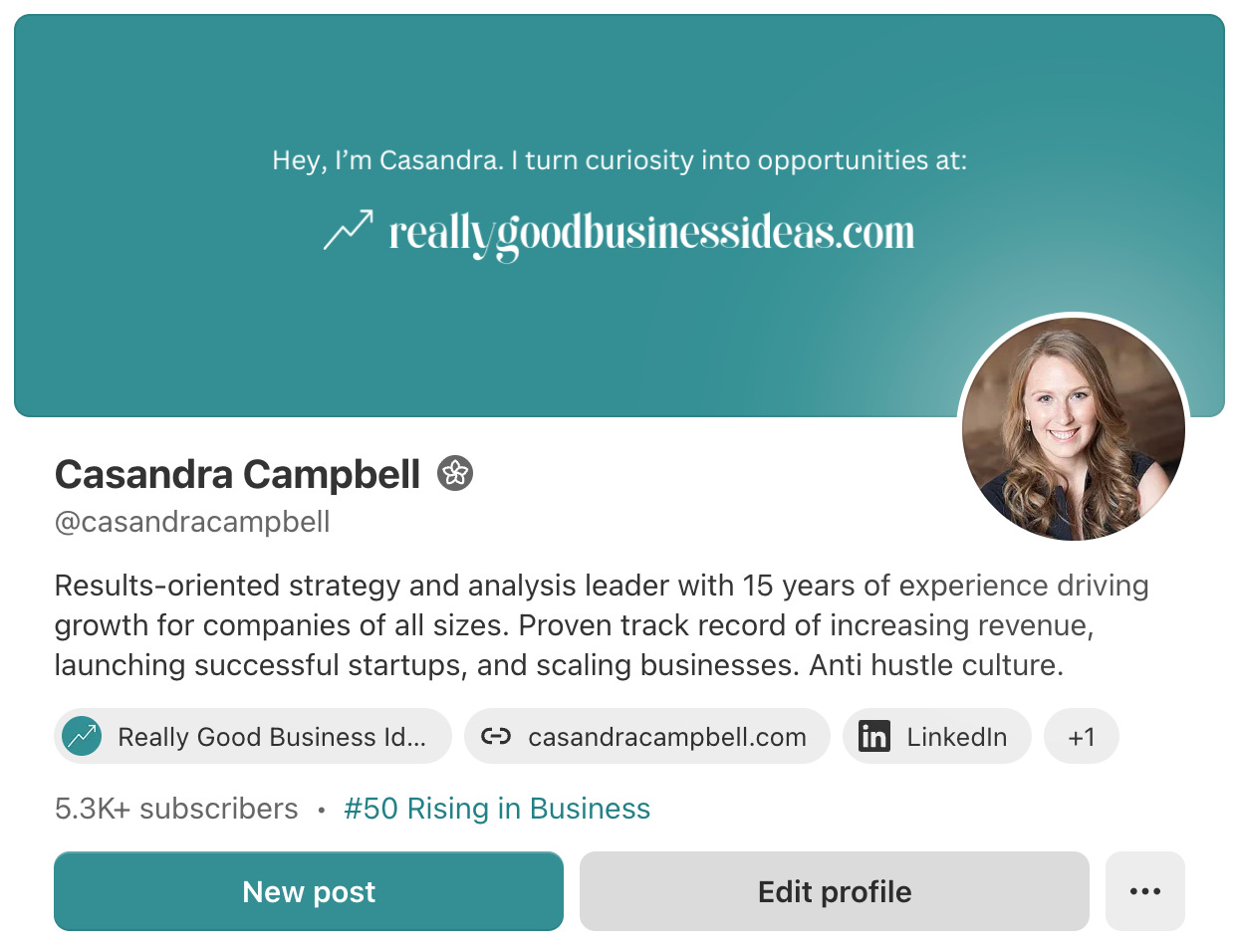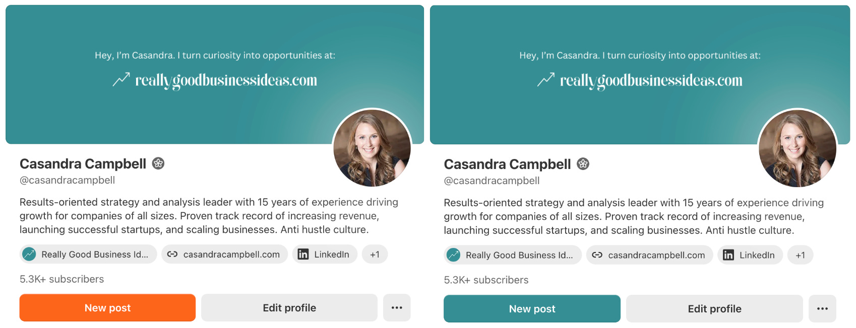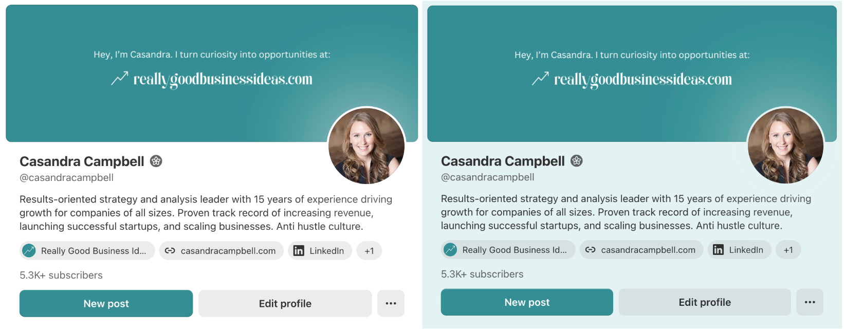 I opted to keep white as my background color, but here’s how my profile would look if I also used my brand color for my background tint.