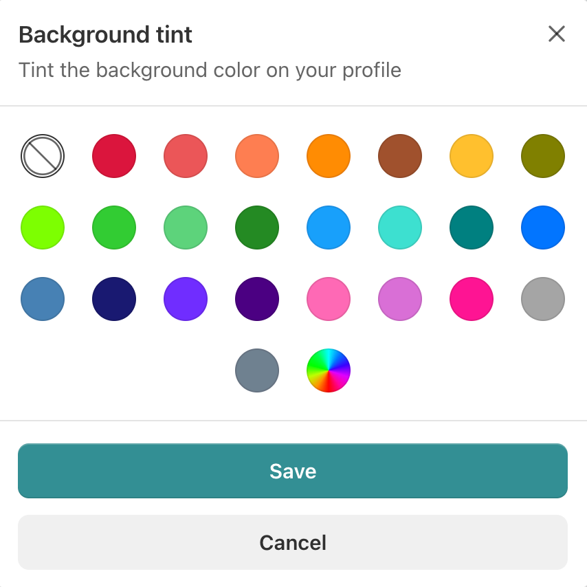You can also choose a background tint for your profile. Whatever color you choose will replace the white background, but with a lighter “tint” version of that color.